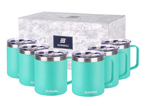 reddit SUNWILL 14 oz Coffee Mug Set of 6, Vacuum Insulated Camping Mug with Lid, Double Wall Stainless Steel Travel Tumbler, Coffee Cup Outdoor, Powder Coated Teal